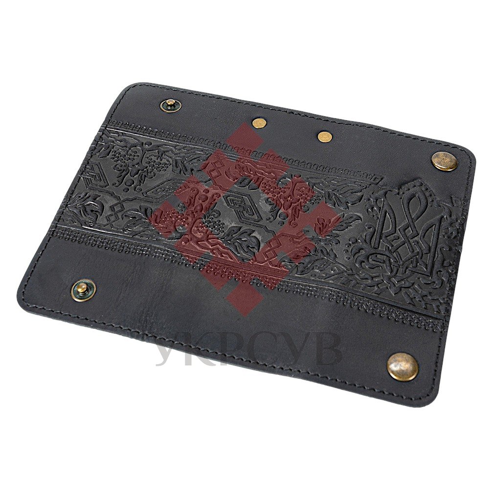 Стильна ключниця з натуральної шкіри, створена для тих, хто цінує символіку та український характер у щоденних речах. Чорний колір додає виробу глибини, а тиснений візерунок із Тризубом та калиновою гілкою підкреслює його автентичність.