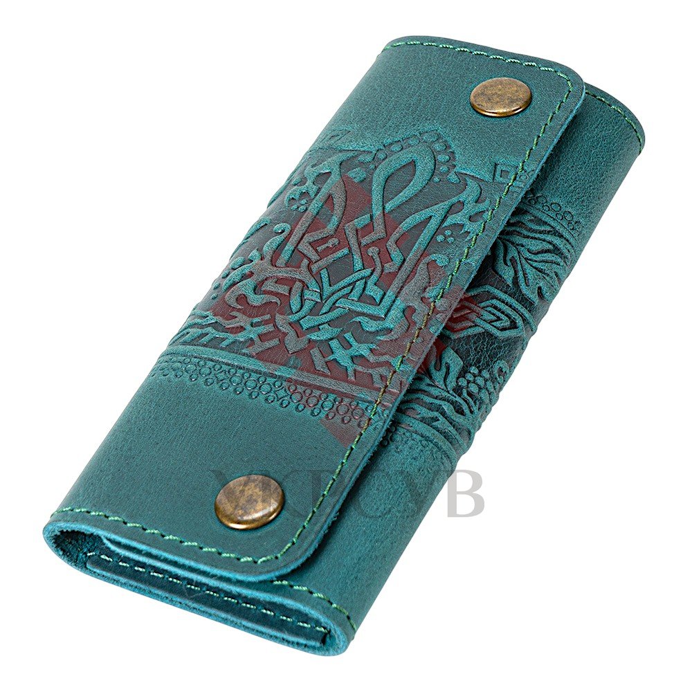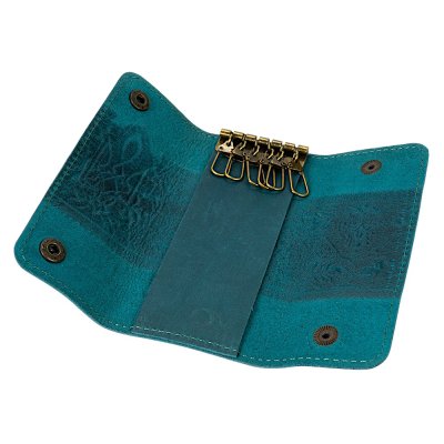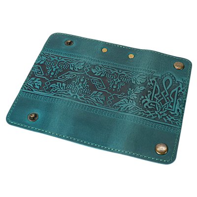 Стильна ключниця з натуральної шкіри, створена для тих, хто цінує символіку та український характер у щоденних речах. Бірюзовий колір додає виробу глибини, а тиснений візерунок із Тризубом та калиновою гілкою підкреслює його автентичність.