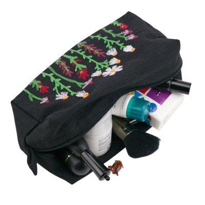 Вишита косметичка — стильний аксесуар, що поєднує практичність та витончену українську естетику. Чорна основа підкреслює кольорову вишивку, завдяки чому кожна квітка виглядає особливо яскраво й виразно. Така косметичка стане гарним доповненням до щоденного образу й допоможе тримати всі дрібниці впорядковано.