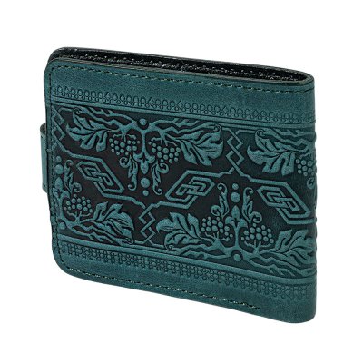Стильний та лаконічний гаманець із натуральної шкіри, створений для поціновувачів української символіки та сучасної практичності. Бірюзовий колір надає виробу індивідуальності, а витончене тиснення з мотивом калини та тризуба підкреслює національний характер аксесуара.