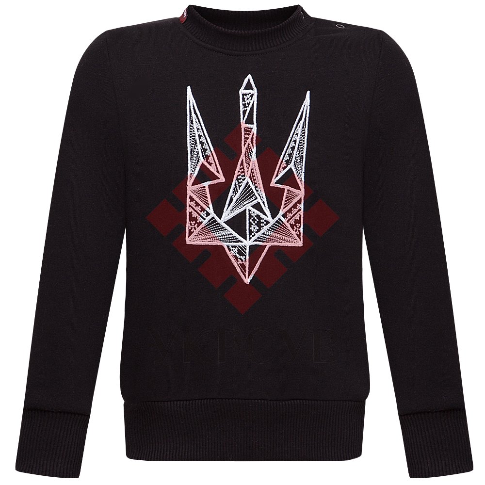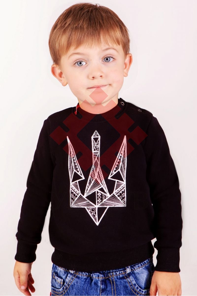 Категорія: Світшоти Дитячий світшот з білим стилізованим тризубом – це чудовий подарунок для дитини. Тризуб виконаний гладдю. Матерія утеплена, ніжна для тіла, тому комфортна і практична в холодну пору року.