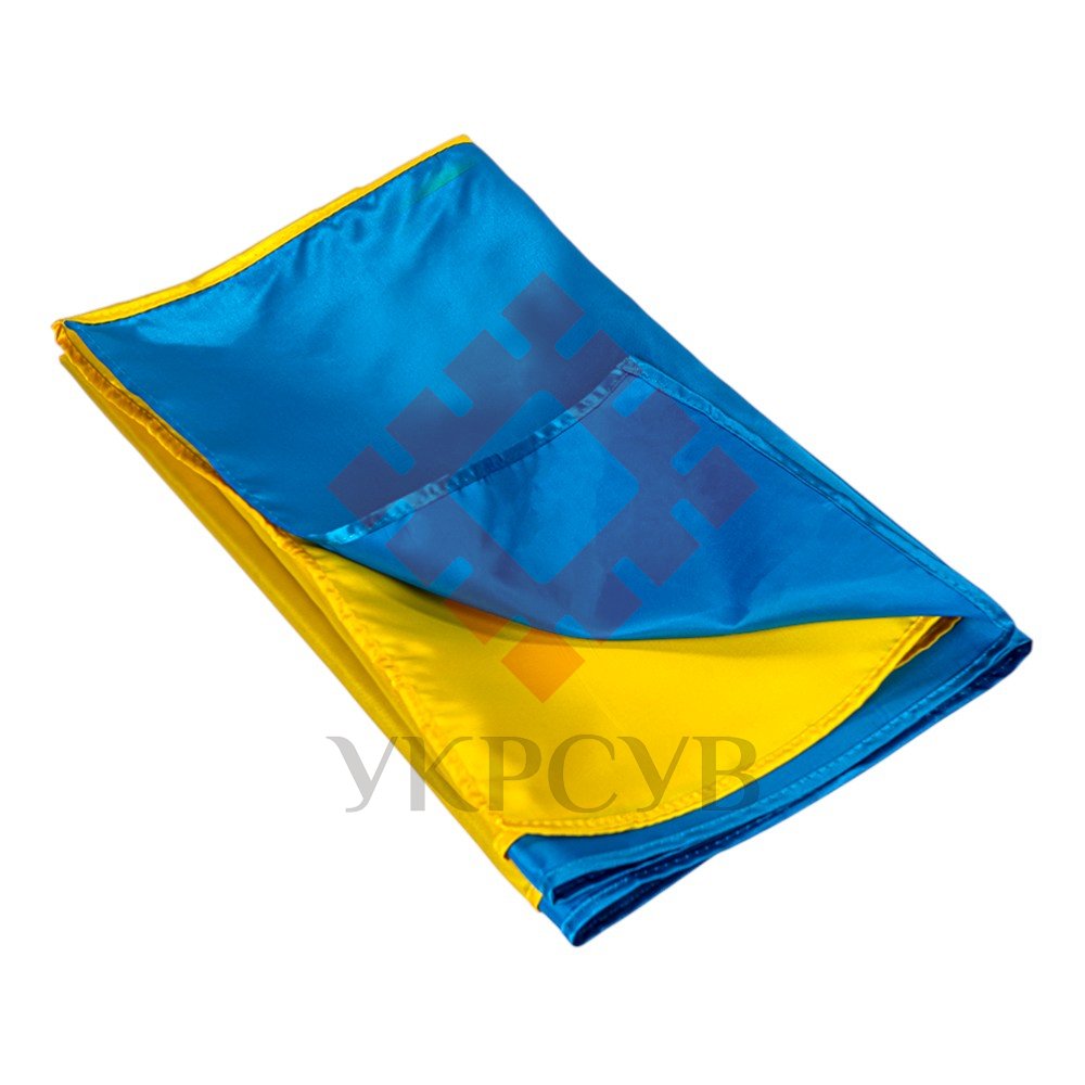 Легкий атлас красиво «грає» на світлі, а компактне складання зручно для зберігання та транспортування. Це практичний варіант, коли потрібен прапор з естетичним виглядом і виразними кольорами.