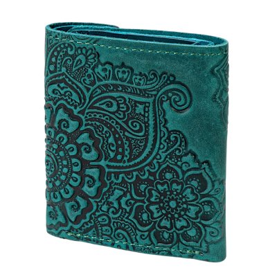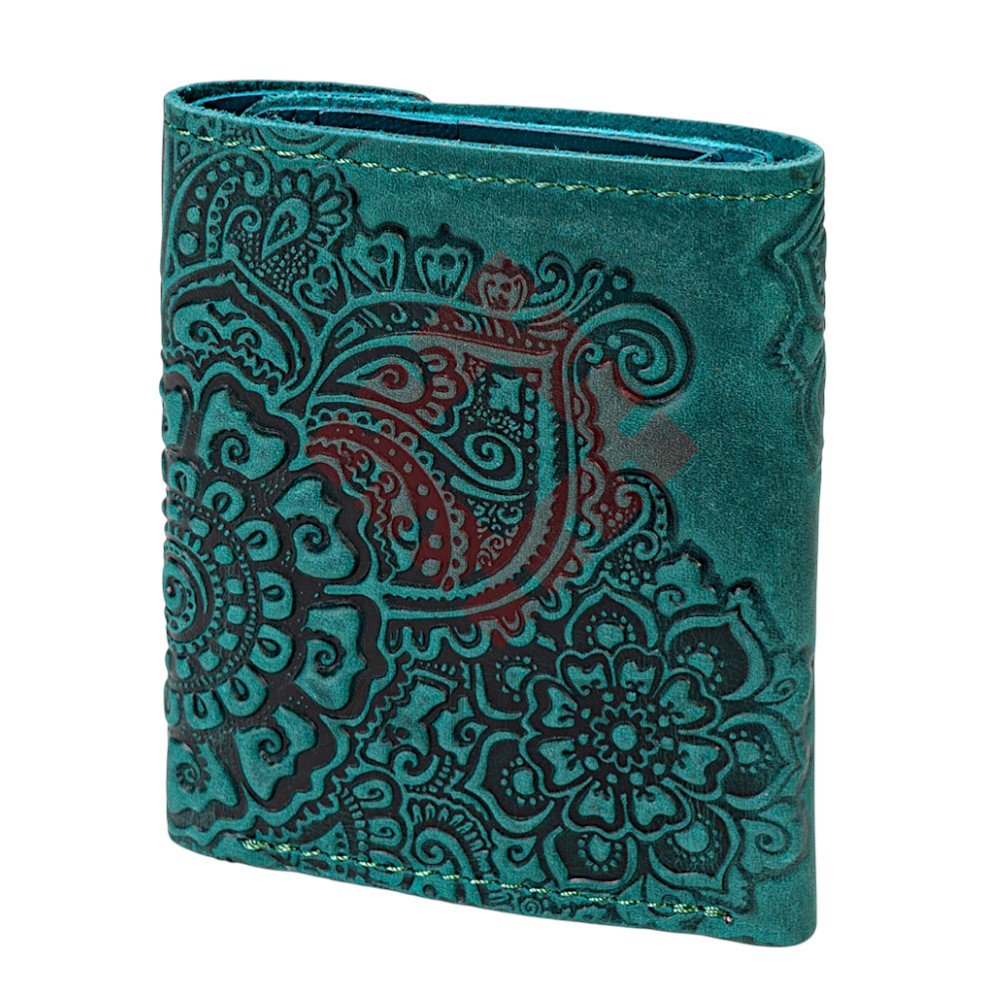 Гаманець шкіряний міні "Квіти", бірюзовий (36668)