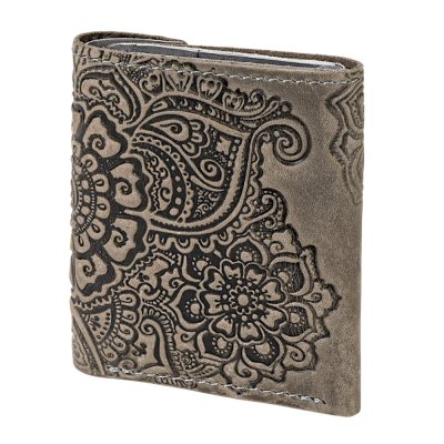 Мінігаманець «Квіти» — це поєднання витонченості та функціональності в компактному форматі. Розкішне тиснення з квітковими та орнаментальними мотивами створює ефект об’ємного візерунка, який красиво підкреслює текстуру натуральної шкіри.