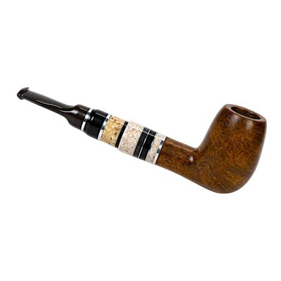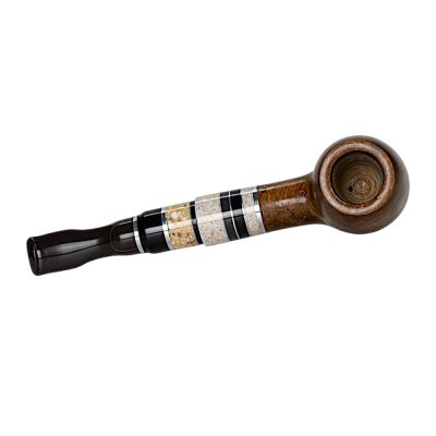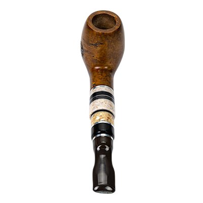 Особливу увагу привертає декоративна частина мундштука, виконана з акрилу та штучного каменю з контрастними вставками. Така композиція додає люльці характеру та стилю, поєднуючи традиційну майстерність із сучасними матеріалами. Завдяки продуманій конструкції люлька розрахована на стандартний фільтр 8 мм, що забезпечує комфортне та м’яке куріння.