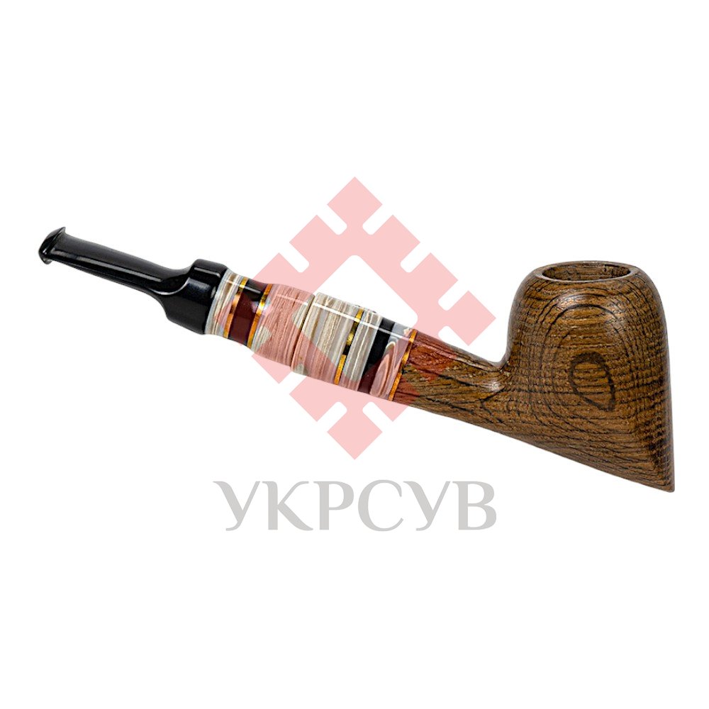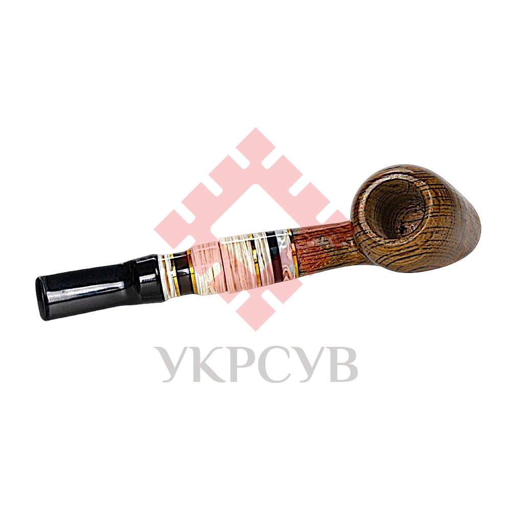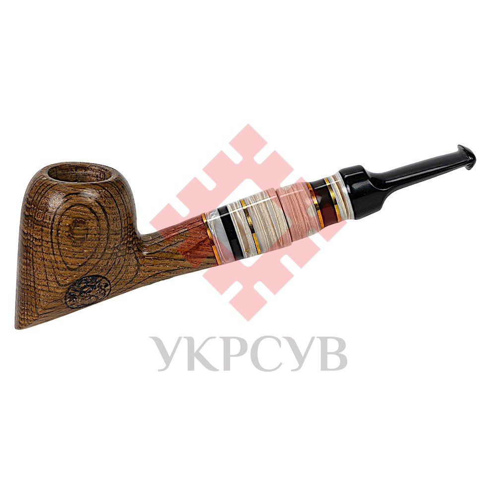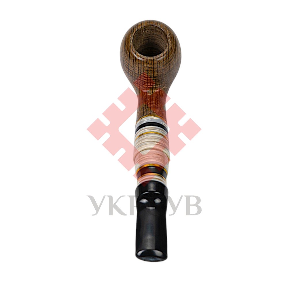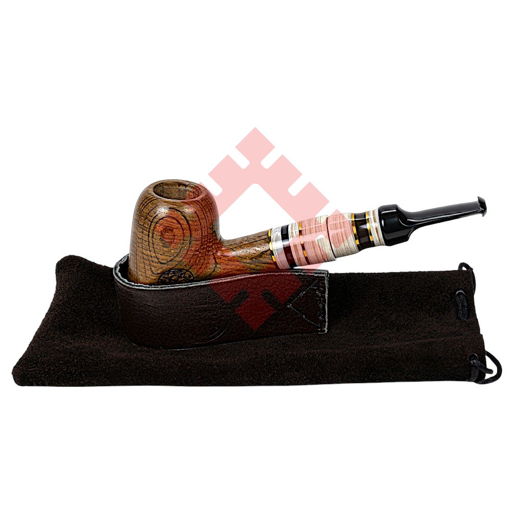 Особливого характеру виробу додає мундштук, виконаний з акрилу та штучного каменю з декоративними вставками. Контраст темної деревини та світлих елементів створює стильний і сучасний вигляд. Конструкція люльки передбачає використання стандартного фільтра 8 мм, що забезпечує комфортне та м’яке куріння.