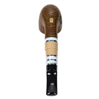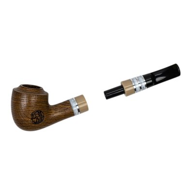 Мундштук виконаний із акрилу та штучного каменю з декоративними світлими вставками, що створюють стильний контраст із темним деревом. Така комбінація матеріалів надає люльці сучасного вигляду та підкреслює її індивідуальність. Конструкція передбачає використання стандартного фільтра 8 мм, який допомагає зробити куріння більш м’яким і комфортним.