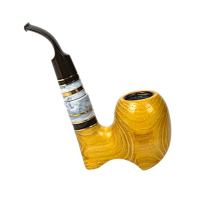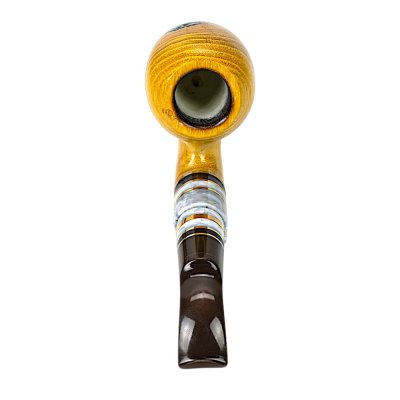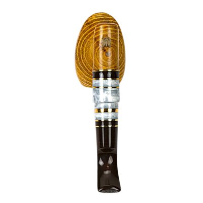 Мундштук виконаний з акрилу та штучного каменю з декоративними вставками, що гармонійно поєднують темні та світлі елементи. Така комбінація створює стильний контраст із золотистою деревиною та підкреслює елегантний дизайн люльки. Конструкція передбачає використання стандартного фільтра 8 мм, який робить процес куріння більш м’яким та комфортним.