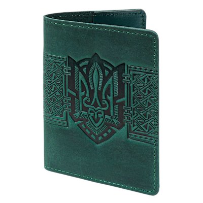 Обкладинка для паспорта "Тризуб - геометрія", темно-зелений (29021)