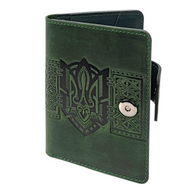 - Особливості: тиснений Тризуб, орнаментальний декор, внутрішні відділення для документів