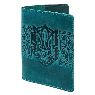Обкладинка для паспорта "Тризуб - геометрія", бірюзовий