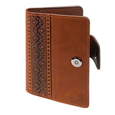 - Особливості: орнамент у стилі української вишивки, компактний формат, внутрішні відділення для документів