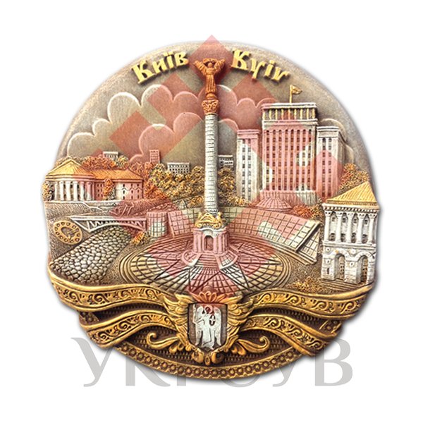 Керамічна тарілка-панно - Майдан Незалежності (сепія) 12 см (16475)
