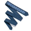 Тонка вишита краватка №720 – це унікальний подарунок для боса, друга чи колеги по роботі. Вузька вишита краватка – це необхідний аксесуар для ділової людини. Матеріал краватки – костюмна тканина синього кольору. Довжина виробу – 145см.