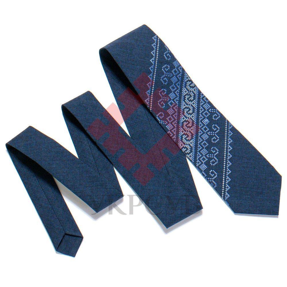 Вишита краватка №722 – це унікальний подарунок для боса, друга чи колеги по роботі. Вишита краватка – це необхідний аксесуар для ділової людини. Матеріал краватки – костюмна тканина синього кольору, класичного крою. Довжина виробу – 145см.