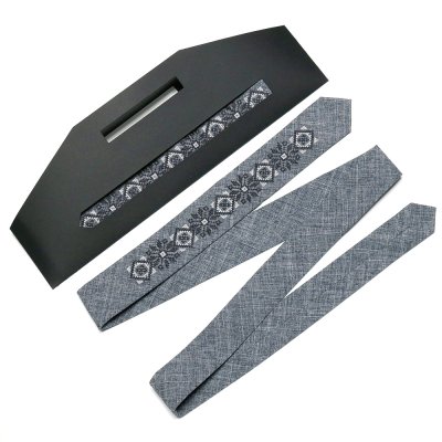 Усі вишиті краватки – запаковані в ексклюзивну упаковку ручної роботи. Чорна фірмова упаковка виготовлена з дизайнерського картону, добре тримає форму виробу при транспортуванні.