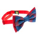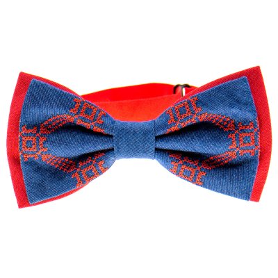 Вишитий метелик №823 виготовлений з з тканин двох видів: синього деніму і червоної костюмної тканини. Такий метелик – це вишуканий аксесуар, тому буде оригінальним подарунком для близьких або знайомих на будь-яке свято.