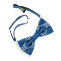 Вишитий метелик №824 виготовлений з з тканин двох видів: синього деніму і білої костюмної тканини. Такий метелик – це вишуканий аксесуар, тому буде оригінальним подарунком для близьких або знайомих на будь-яке свято. Одягається за допомогою застібки з регулюванням її довжини.