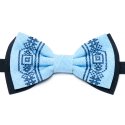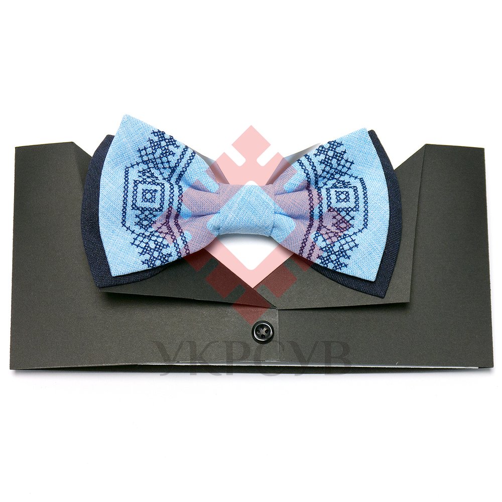 Вишитий метелик №634 виготовлений з використанням комбінації костюмної тканини двох кольорів – темного синього та блакитного. Такий метелик – це нестандартний або навіть ексклюзивний вишитий виріб, тому буде оригінальним подарунком для близьких або знайомих на будь-яке свято.