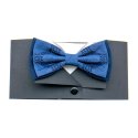 Вишитий метелик №826 виготовлений з костюмної тканини синього кольору. Такий метелик – це нестандартний або навіть ексклюзивний вишитий виріб, тому буде оригінальним подарунком для близьких або знайомих на будь-яке свято.