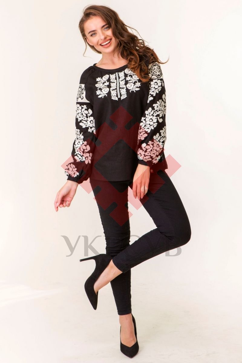 Жіноча вишиванка Фолк мода (779)Ця вишукана жіноча вишиванка з чорного льону виконана за мотивами борщівської вишивки. Дана модель сорочки багата на різноманітні деталі: пишні та вишиті рукава, округла горловина, кремові лляні вставки на рукавах, а також незвична квіткова вишивка гладдю. Таку вишиванку повинна мати кожна українська жінка! Склад: льон/linen - 100% Прання: |