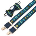 Довжина підтяжок регулюється за допомогою металевих регуляторів та становить приблизно 77 см, ширина 3 см. Кріплення метелика здійснюється на резинці для швидкого одягання на вашого непосидючого.