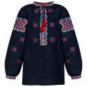 Сорочка вишиванка для дівчинки Фолк мода (7702)Дитяча вишиванка в синьому кольорі поєднала в собі давні традиції, сучасні тенденції та комфорт. Натуральна лляна тканина, акуратна машинна вишивка гляддю, дерев'яна фурнітура - визначає високу якість виробу від "Фолк Мода". Візерунок, в основу якого покладений давній оберіг та символ - зірка-Алатир, розміщений спереду сорочки та на рукавах. Загальна інформація Тканина: 100% льон Догляд: Прання: