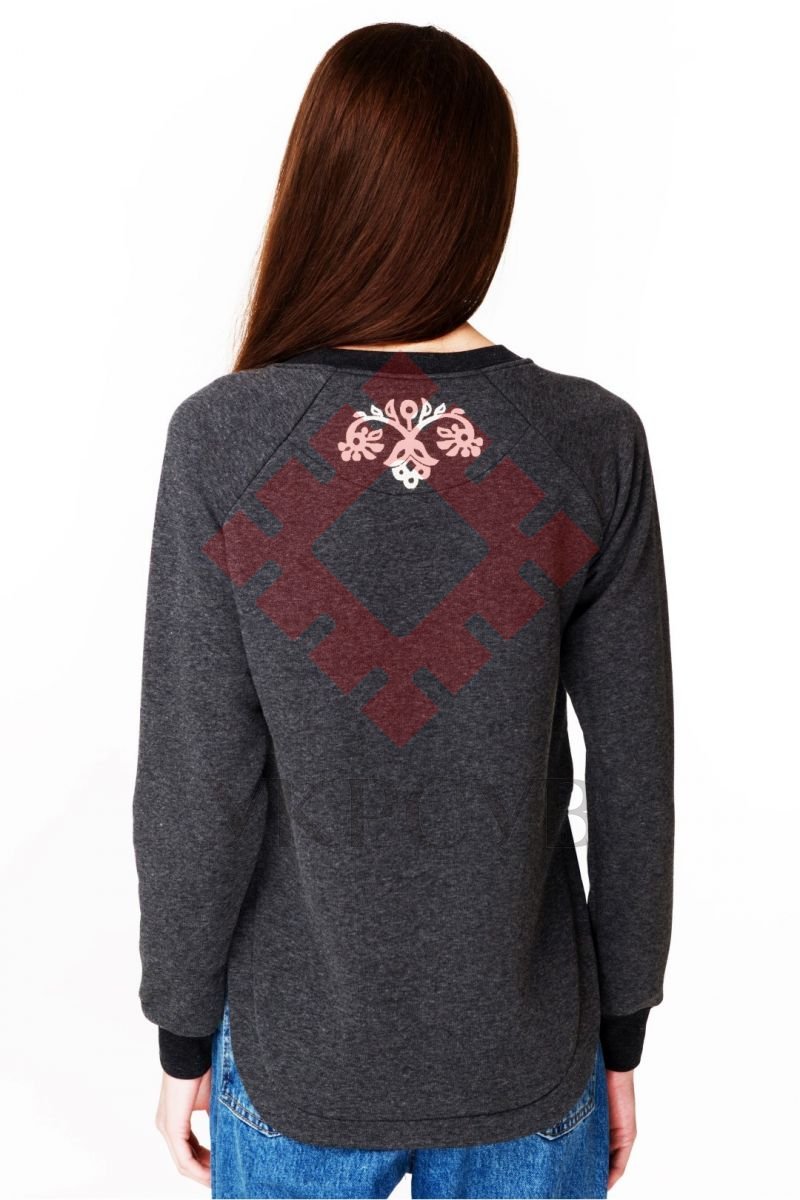Жіночий світшот із вишивкою — musthave цього сезону. Візерунки гладдю ефектно виглядають на сірій меланжевій тканині. Виріб є стійким до прання, не втрачає первинні кольори. Цей базовий світшот чудово поєднується із джинсами, шкіряними штанами, лосинами, шортами тощо. Склад: Догляд: Прання: