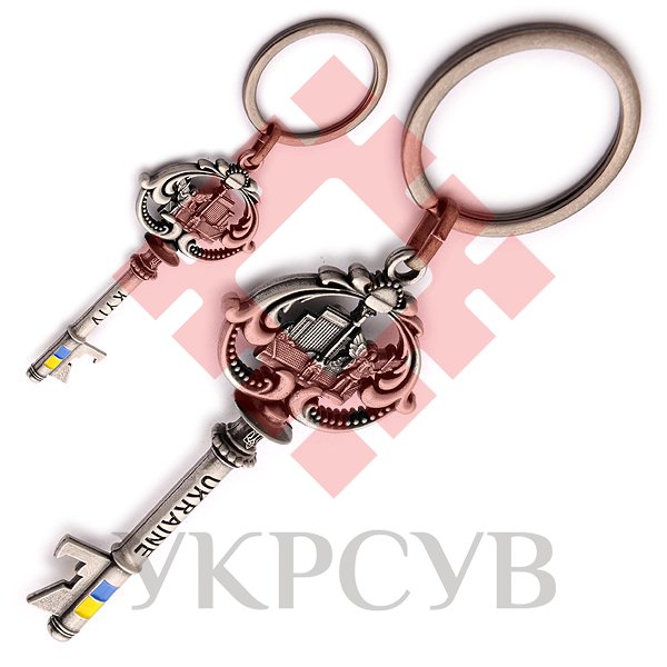 Брелок-відкривачка металевий - Ключик з колажем (темне срібло)