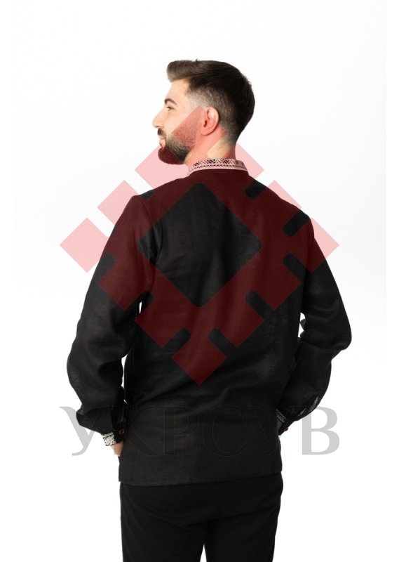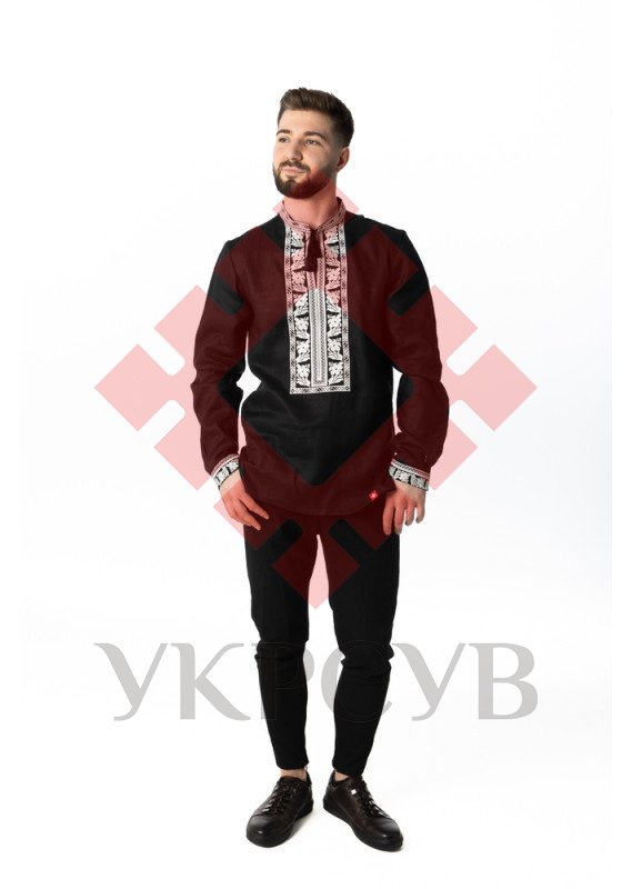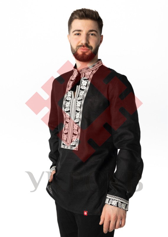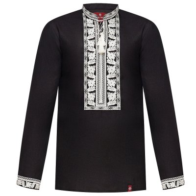 Сорочка чоловіча вишиванка Фолк мода (7003)Ця вишукана чоловіча вишиванка з чорного льону виконана за мотивами борщівської вишивки. Дана модель сорочки багата на різноманітні деталі: незвична квіткова вишивка гладдю, дерев'яні гудзики на манжетах, зручні зав'язки-кутасики. Щоб придбати цю вишиванку достатньо лише обрати потрібний розмір та оформити замовлення.Загальна інформація Тканина: 100% льон Догляд: Прання: