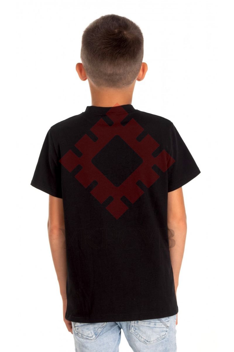 Футболка вишиванка для хлопчика Фолк Мода (6020)Дитяча футболка чорного кольору з українською вишивкою личитиме кожній дитині. Зручний крій, якісні, безпечні матеріали, акуратна вишивка Вас приємно здивує. Український орнамент виконаний хрестиком червоними нитками.Загальна інформація Тканина: 95% - бавовна/cotton 5% - поліестер/polyesterКолір тканини: чорний Вишивальна нитка: віскозна Довжина рукава: короткий Техніка виконання вишивки: хрестик Догляд: Прання: