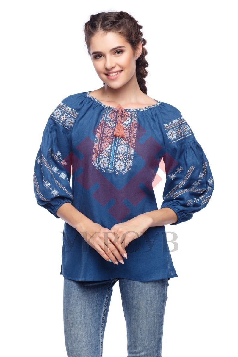 Вишиванка жіноча Слобожанка - Милослава (синій льон) 46 (19261)