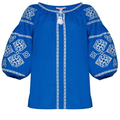 Блуза вишиванка "Слобожанка" - Світодара, блакитний льонВишиванка виготовлена з натурального льону насиченого блакитного кольору. У поєднанні із контрастною вишивкою хрестиком та бездоганним кроєм, ця вишиванка створить стильний та жіночний образ. Характер орнаменту: геометричний Загальна інформація Виготовлено в Україні. Догляд: Прання:
