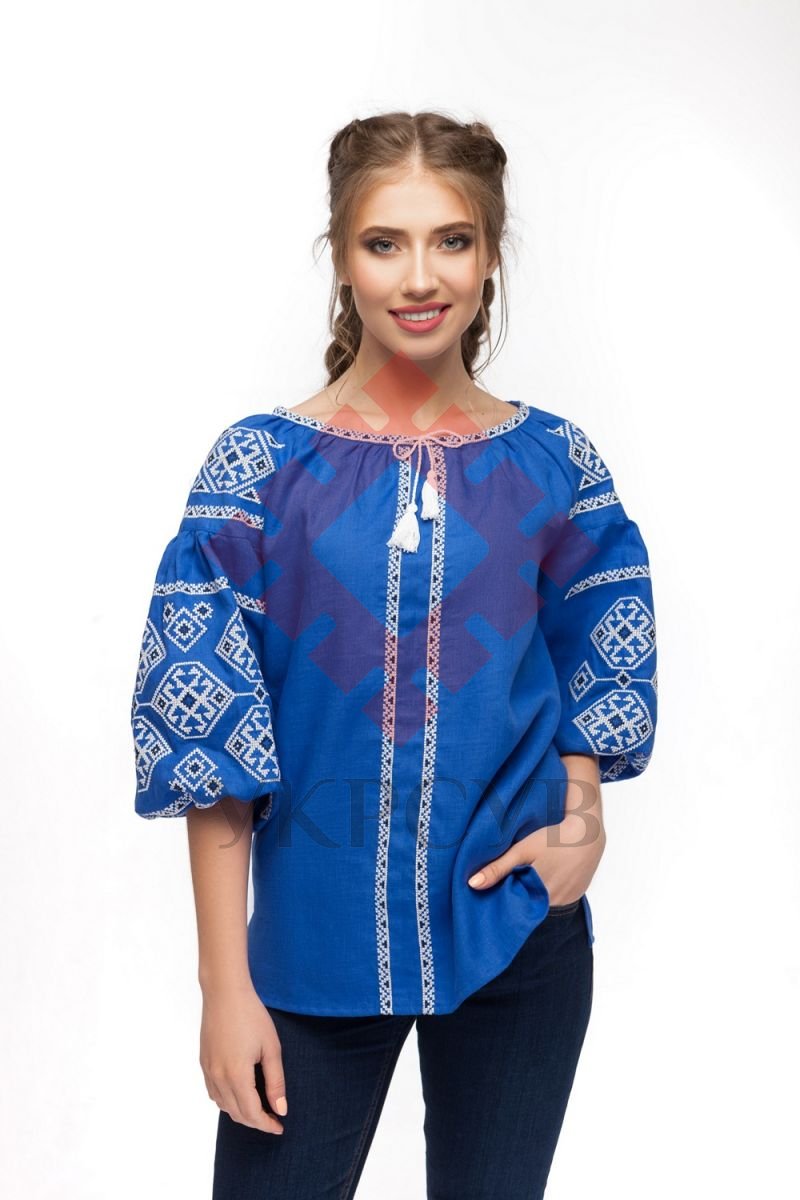Блуза вишиванка "Слобожанка" - Світодара, блакитний льонВишиванка виготовлена з натурального льону насиченого блакитного кольору. У поєднанні із контрастною вишивкою хрестиком та бездоганним кроєм, ця вишиванка створить стильний та жіночний образ. Характер орнаменту: геометричний Загальна інформація Виготовлено в Україні. Догляд: Прання: