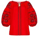 Блуза вишиванка "Слобожанка" - Світодара, червоний льонВишиванка виготовлена з натурального льону насиченого червоного кольору. У поєднанні із контрастною вражаючою вишивкою хрестиком та бездоганним кроєм, ця вишиванка створить стильний та жіночний образ. Характер орнаменту: геометричний Загальна інформація Виготовлено в Україні. Догляд: Прання: