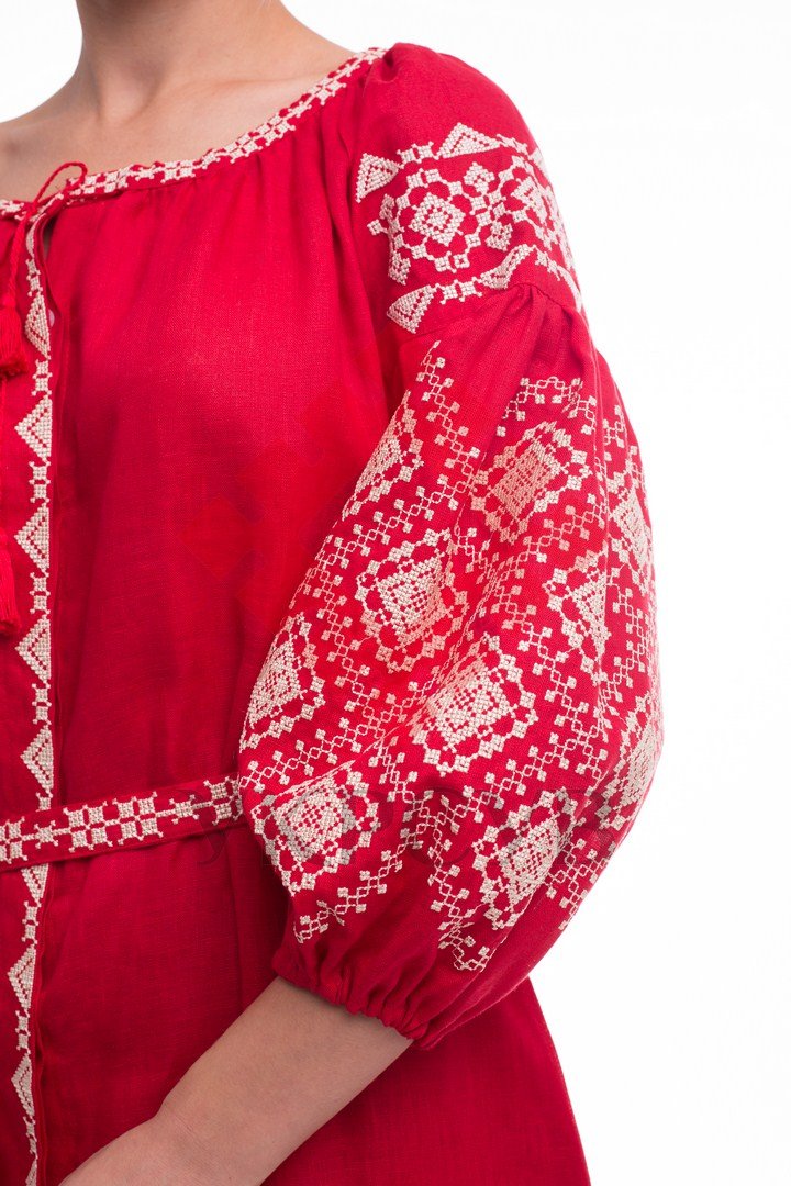 Сукня вишиванка Слобожанка - Іванна (червоний льон) 44 (11215)