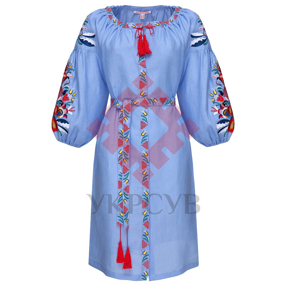 Сукня вишиванка Слобожанка - Сона (блакитний льон) 42 (17262)
