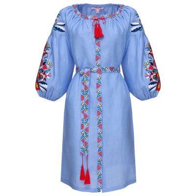 Сукня вишиванка "Слобожанка" - СонаСукня з натурального льону блакитного кольору. Родзинкою цієї моделі є пишні рукава, розшиті яскравою кольоровою квітковою вишивкою. Характер орнаменту: рослинний Загальна інформація Тканина: Льон |