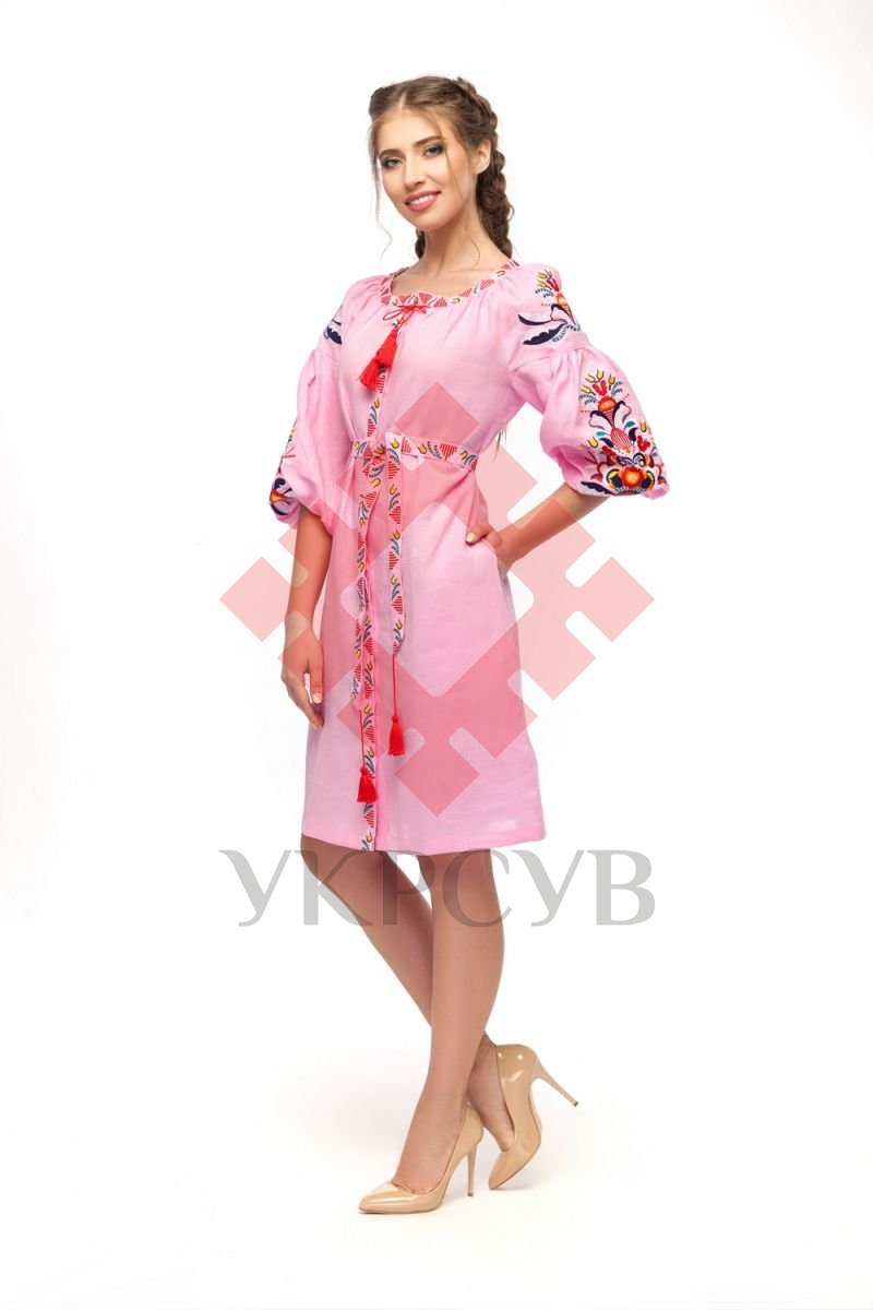 Сукня вишиванка Слобожанка - Сона (рожевий льон) 42 (16525)