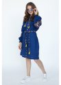 Сукня для дівчинки "Слобожанка" - Яскраві півникиСукня з натурального льону насиченого синього кольору. Родзинкою цієї моделі є пишні рукава, розшиті яскравою кольоровою оригінальною вишивкою. Характер орнаменту: рослинний Загальна інформація Тканина: Льон Догляд: Прання: