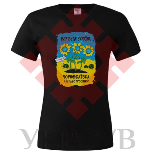 Футболка жіноча Чорнобаївка Ласкаво просимо! (чорна) XL (27770)
