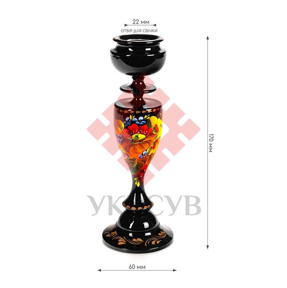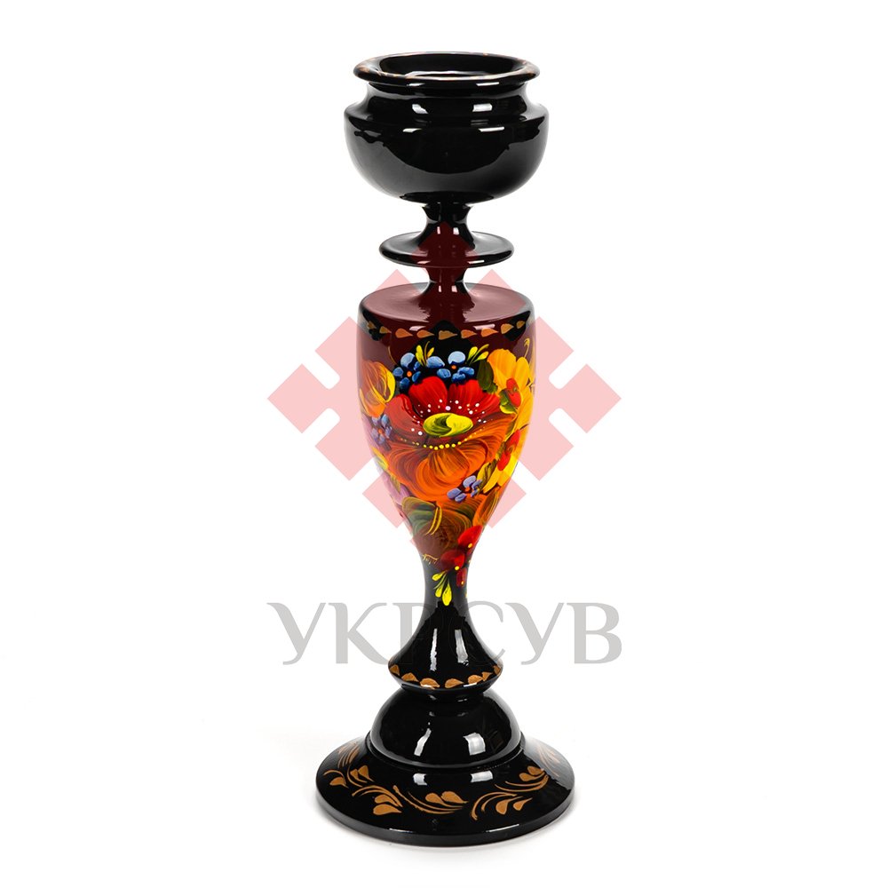 Свічник розписаний в техніці Петриківський розпис. Ручний розпис, авторська робота. Матеріал виробу: дерево Розмір: