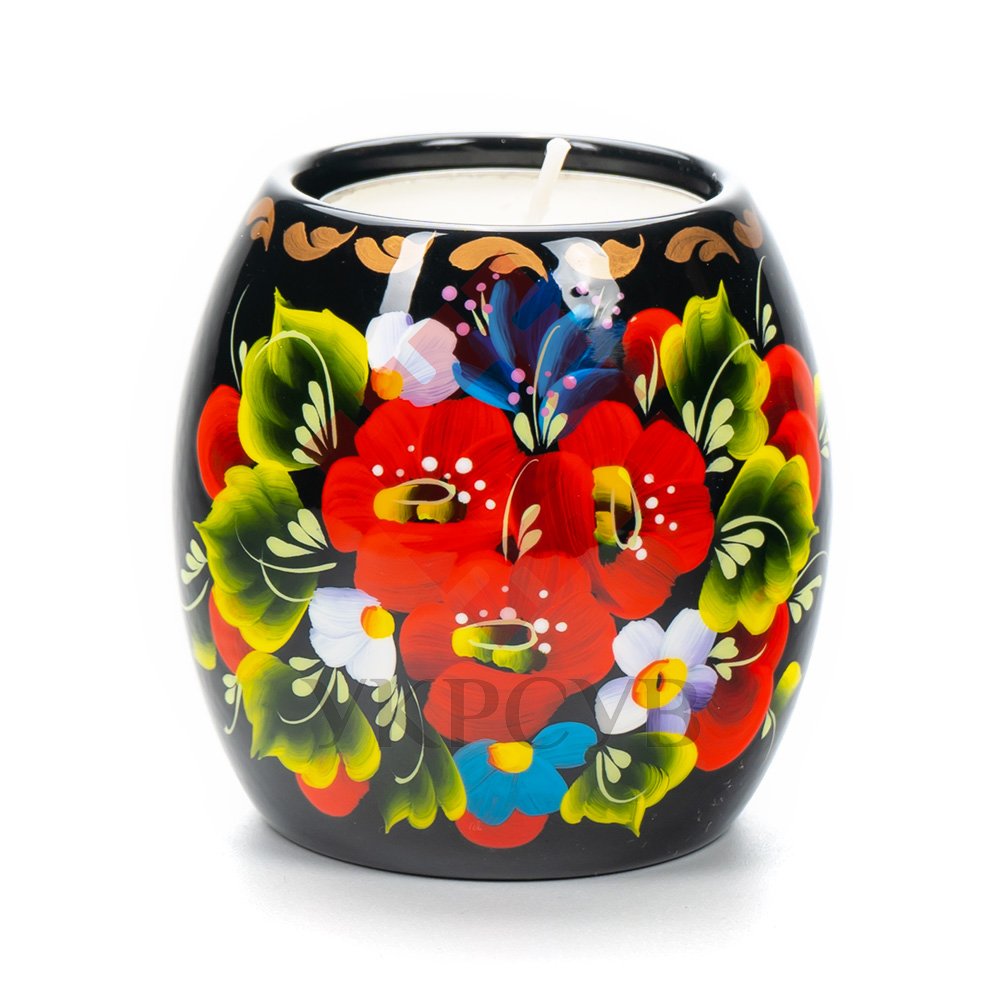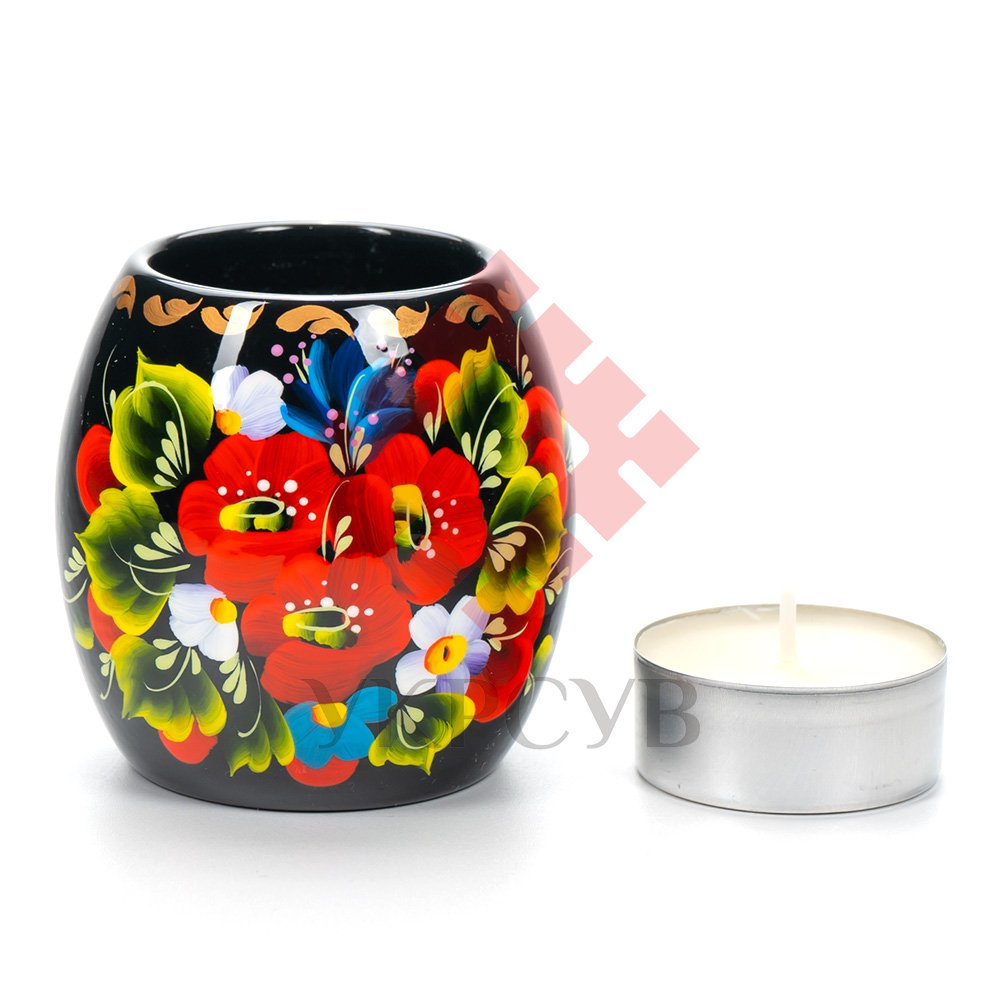 Свічник розписаний в техніці Петриківський розпис. Ручний розпис, авторська робота. Матеріал виробу: дерево Розмір:
