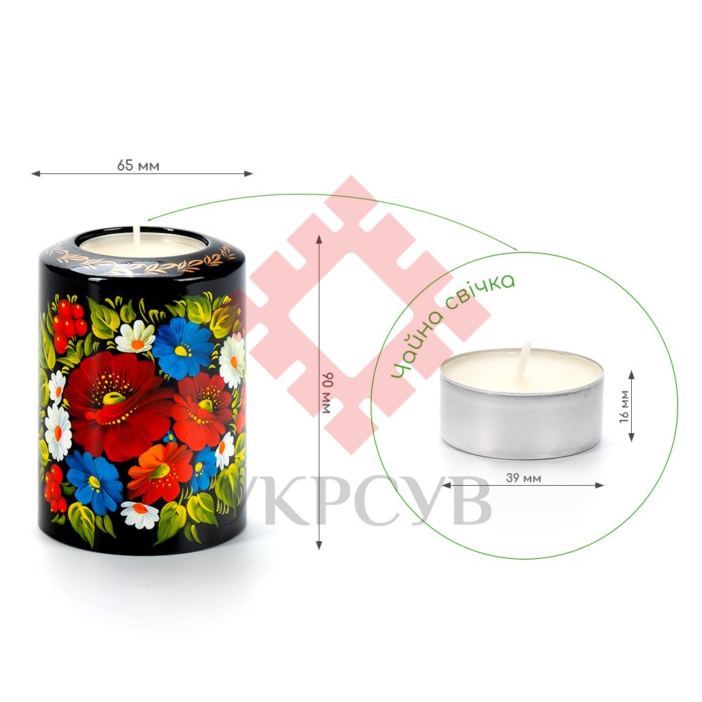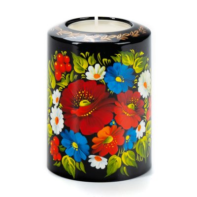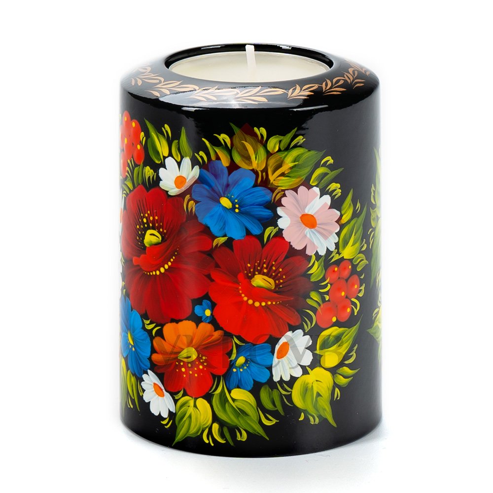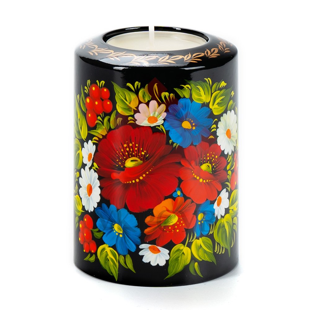 Свічник розписаний в техніці Петриківський розпис. Ручний розпис, авторська робота. Матеріал виробу: дерево Розмір: