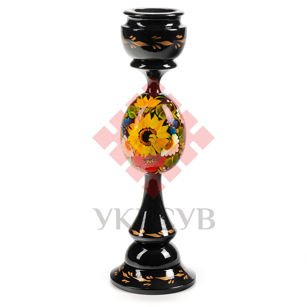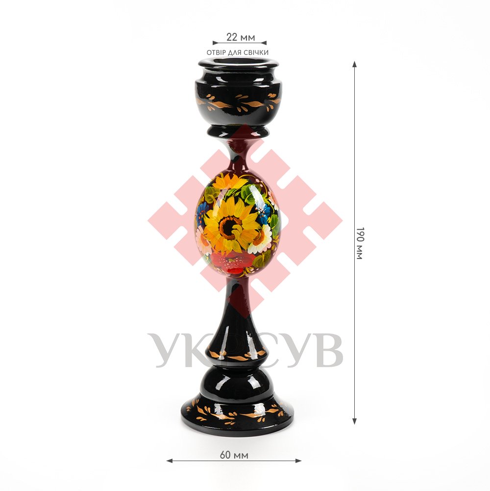Свічник розписаний в техніці Петриківський розпис. Ручний розпис, авторська робота. Матеріал виробу: дерево Розмір: