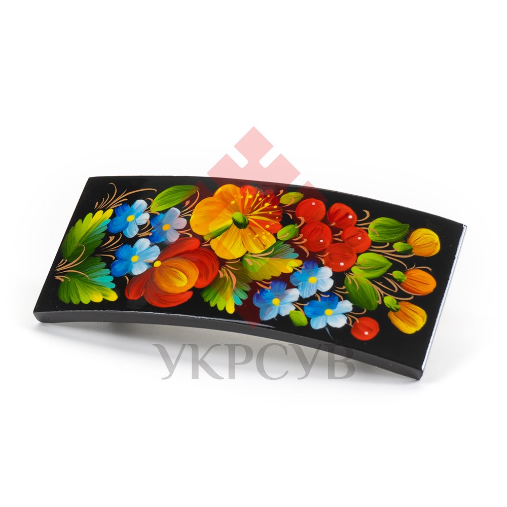 Заколка розписана в техніці Петриківський розпис. Ручний розпис, авторська робота. Матеріал виробу: дерево