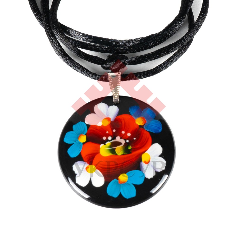 Кулон розписаний в техніці Петриківський розпис. Ручний розпис, авторська робота. Матеріал виробу: дерево