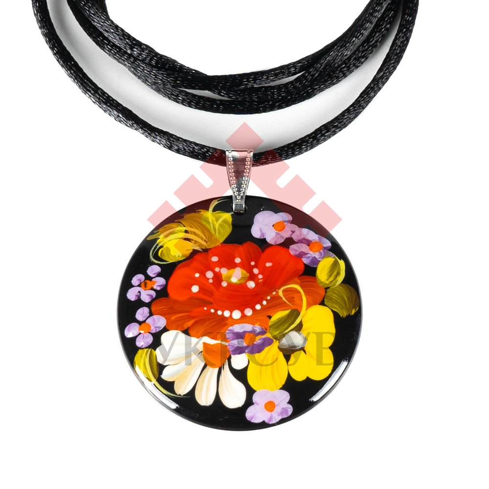 Кулон розписаний в техніці Петриківський розпис. Ручний розпис, авторська робота. Матеріал виробу: дерево