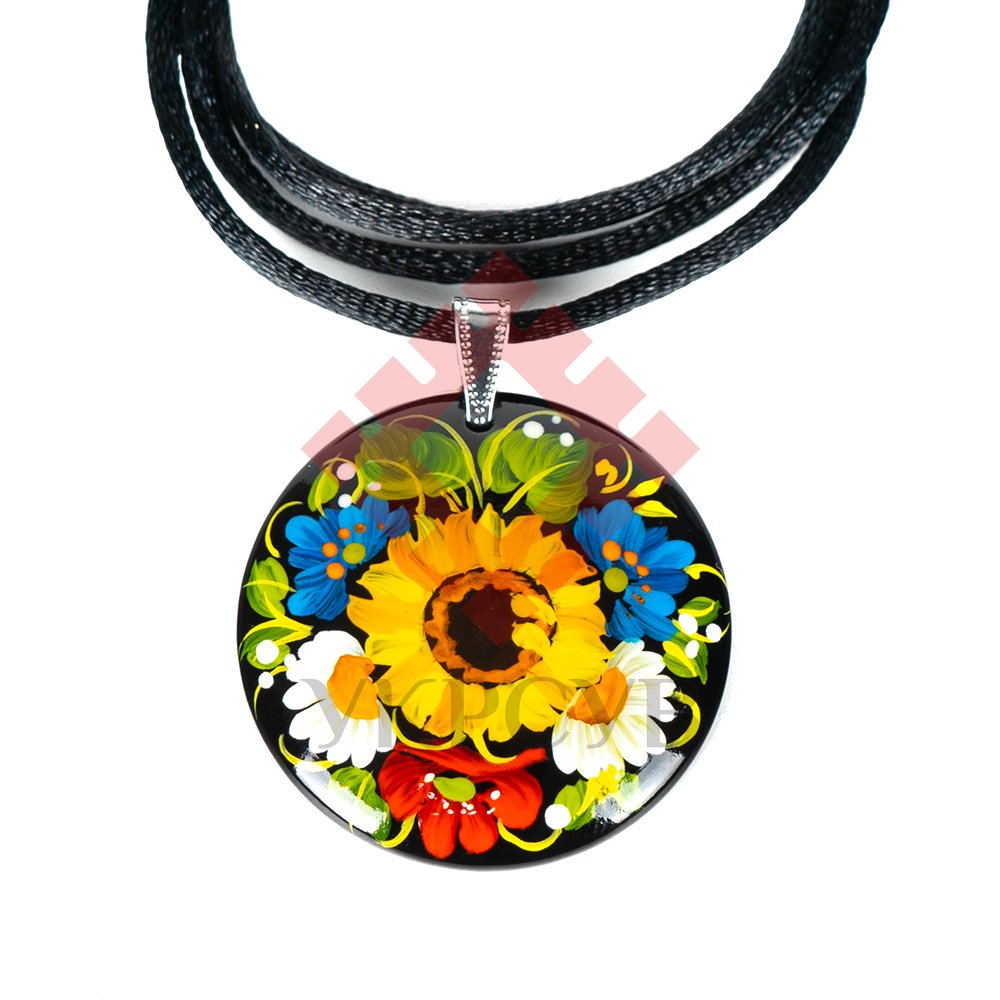 Кулон розписаний в техніці Петриківський розпис. Ручний розпис, авторська робота. Матеріал виробу: дерево