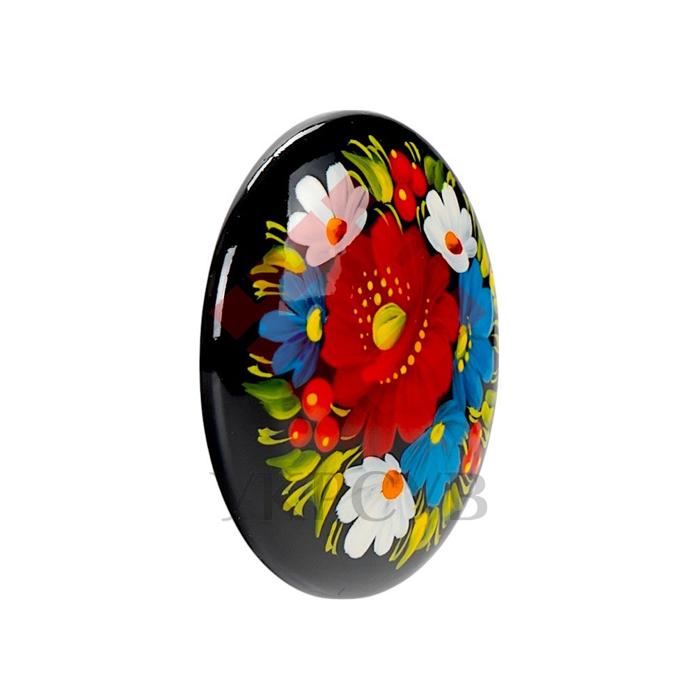 Брошка розписана в техніці Петриківський розпис. Ручний розпис, авторська робота. Матеріал виробу: дерево